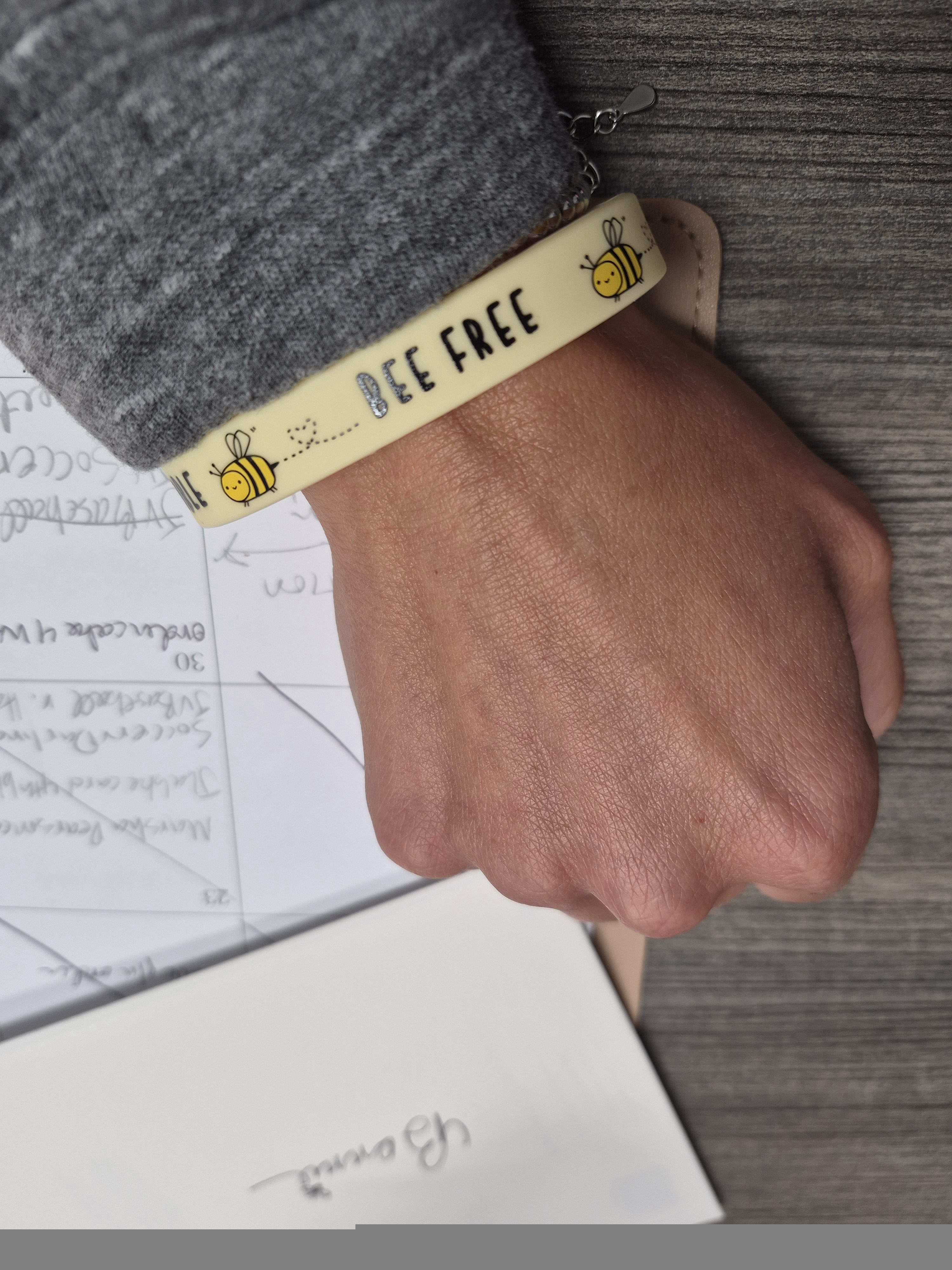I am blessed with a work family that is loving and gracious. Last week was my birthday and among many other friends and family, my coworkers made it special in many ways. One of which was wearing these silicone bumble bee bracelets that read different plays on “bee” such as, “bee honest, bee kind, bee humble.”